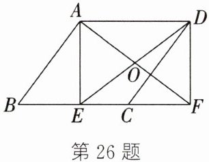 26. 如图,在 $□ ABCD$ 中,$AE⊥ BC$ 于点 $E$,延长 $BC$ 至点 $F$,使 $CF = BE$,连接 $DF$,$AF$ 与 $DE$ 交于点 $O$.