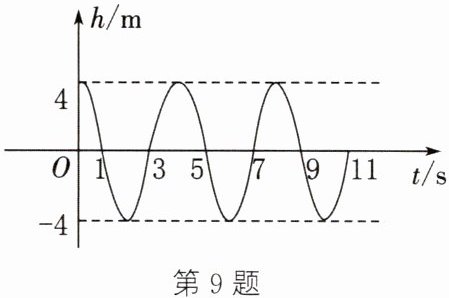 9. 渔船常利用超声波来探测远处鱼群的方位,超声波的振幅 $ h(\mathrm{m}) $ 与传输时间 $ t(\mathrm{s}) $ 之间的关系如图所示.