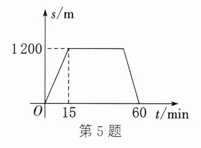 5. (2024·启东期中)小明从家步行到图书馆查阅资料,查完资料后,小明立刻按原路返回家.已知回家时的速度是去时速度的1.5倍.在整个过程中,小明离家的距离$s(m)$与他所用时间$t(min)$之间的关系如图所示,则小明在图书馆查阅资料的时间为
