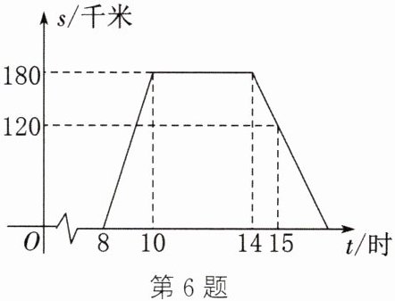 6. (新情境·日常生活)某天,小明全家上午8时自驾小汽车从家里出发,到距离180千米的某著名旅游景点游玩.该小汽车离家的距离$s$(千米)与时间$t$(时)的关系可以用如图所示的曲线表示.根据图象提供的有关信息,解答下列问题: