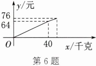 设总质量为$m$千克,总销售金额为76元,可得$64 + 1.2(m - 40)=76$,解得$m = 50$。