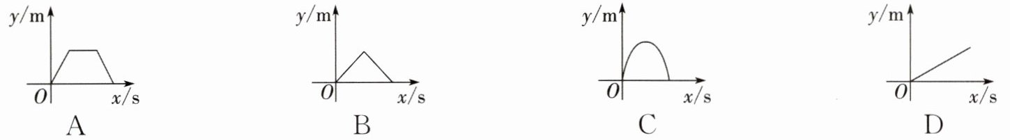 5. 当货车匀速通过隧道(隧道长大于货车长)时,货车从进入隧道至离开隧道的时间 $ x $ (s) 与货车在隧道内的长度 $ y $ (m) 之间的关系用图象描述大致是(