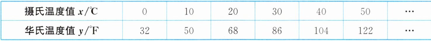 由表格可知,当$x=0$时,$y=32$;当$x=100$时,$y=212$。