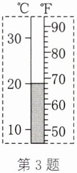 3. 如图所示为一支温度计的示意图,图中左边是用摄氏温度表示的温度值,右边是用华氏温度表示的温度值,下表是这两个温度值之间的部分对应关系:
