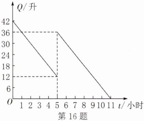 16. 某机动车出发前油箱内有 $ 42 $ 升油,行驶若干小时后,途中在加油站加油若干升,油箱中剩余油量 $ Q $(升)与行驶时间 $ t $(小时)之间的函数关系如图所示。根据图中信息,解答下列问题: