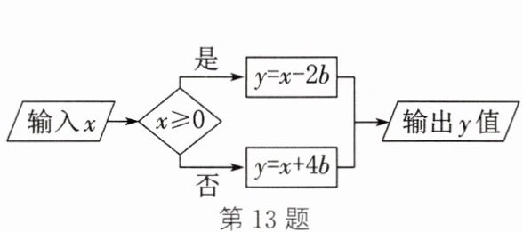 13. 按照如图所示的运算程序计算函数 $ y $ 的值,若输入 $ x $ 的值是 $ 5 $,则输出 $ y $ 的值是 $ 3 $。若输出 $ y $ 的值是 $ -3 $,则输入 $ x $ 的值是