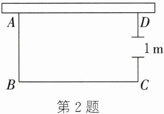 2. 如图,一农户要建一个矩形猪舍. 猪舍的一边利用住房墙,另外三边用 $ 25 $ m 长的建筑材料围成,为方便进出,在边 $ CD $ 上留一个 $ 1 $ m 宽的门. 若设 $ AB $ 的长为 $ y $ m,$ BC $ 的长为 $ x $ m,则 $ y $ 与 $ x $ 之间的函数解析式为 (