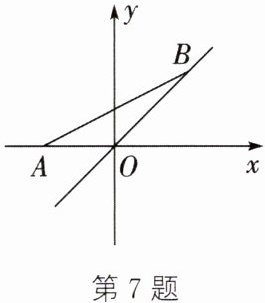 7. 如图,点 $ A $ 的坐标为 $ (-1,0) $,点 $ B $ 在直线 $ y = x $ 上运动. 当线段 $ AB $ 最短时,点 $ B $ 的坐标为 (