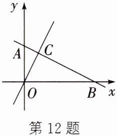 12. 如图, 一次函数 $ y = -\frac{1}{2}x + b $ 的图象与 $ y $ 轴交于点 $ A $, 与 $ x $ 轴交于点 $ B $, 与正比例函数 $ y = 2x $ 的图象交于点 $ C(1,a) $.