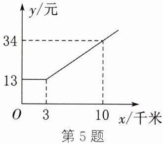 5. 某网约车平台收费 $y$(元)与所行驶的路程 $x$(千米)的函数关系如图所示,根据图中的信息,若小明通过该网约车平台打车从家到机场共收费 $64$ 元,且车速始终保持 $60$ 千米/时不变,不考虑其他因素(红绿灯、堵车等),则他从家到机场需要(