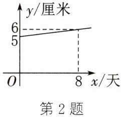 2. 某生物兴趣小组观察一种植物的生长情况,得到这种植物的高度 $y$(厘米)与观察时间 $x$(天)的函数关系图象如图所示,照此计算,该植物的高度不小于 $12$ 厘米至少需要经过(