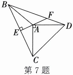 7. 如图,在$\triangle ABC$和$\triangle ABD$中,$AB = AC = AD$,$AC ⊥ AD$,$AE ⊥ BC$于点$E$,$AE$的反向延长线与$BD$交于点$F$,连接$CD$,则线段$BF$,$DF$,$CD$之间的关系为(