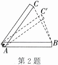 2. 如图,把两根木条 $ AB $ 和 $ AC $ 的一端 $ A $ 用螺栓固定在一起,木条 $ AC $ 自由转动至 $ AC' $ 的位置. 在转动过程中,下列量是常量的为(