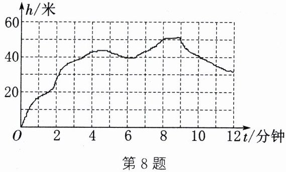 8. 无人机在 12 分钟内的飞行高度 $ h $(米)与时间 $ t $(分钟)之间的函数关系图象如图所示,则下列结论错误的是(
