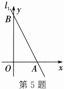5. 如图,直线$l_{1}:y = -2x + 4$与$x$轴、$y$轴分别交于$A$,$B$两点,那么过原点且将$\triangle AOB$的面积平分的直线$l_{2}$对应的函数解析式为(