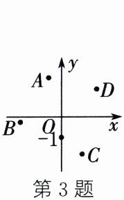3. 如图,$A$,$B$,$C$,$D$为平面直角坐标系中的四个点,则一次函数$y = kx - 1(k < 0)$的图象不可能经过(