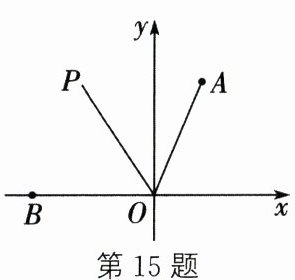 15. 如图,在平面直角坐标系中,点$A$的坐标是$(5,12)$,$B$是$x$轴负半轴上一点. $OP$平分$\angle AOB$,则$OP$所在直线对应的函数解析式为