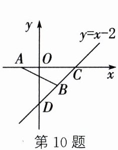 10. 如图,点$A$的坐标为$(-1,0)$,直线$y = x - 2$与$x$轴交于点$C$,与$y$轴交于点$D$,点$B$在直线$y = x - 2$上运