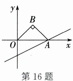 16. 如图,直线$y = \frac{1}{2}x - 4$与$x$轴交于点$A$,以$OA$为斜边在$x$轴上方作等腰直角三角形$OAB$,将$\triangle OAB$沿$y$轴向下平移,当点$B$落在直线$y = \frac{1}{2}x - 4$上时,$\triangle OAB$平移的距离是