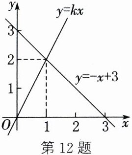 解:由图可知,直线$y = kx$与直线$y=-x + 3$交于点$(1,2)$,