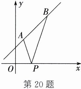20.(1)设直线AB对应的函数解析式为$y = kx + b(k \neq 0)$。由条件,可得$\begin{cases}3 = k + b\\6 = 4k + b\end{cases}$,解得$\begin{cases}k = 1\\b = 2\end{cases}$。