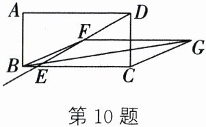 10. 如图,在矩形$ABCD$中,$AB = 2$,$BC = 4$,$E$为边$BC$上的一点,且满足$\angle DEC = 30^{\circ}$,$F$为射线$DE$上一动点,以$BC$,$BF$为邻边作$□ BCGF$,连接$BG$,则$BG$长的最小值是(
