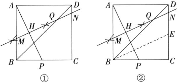 24. (13 分)如图,在正方形$ABCD$中,点$P$在边$BC$上(异于点$B$,$C$),作线段$AP$的垂直平分线分别交$AB$,$CD$,$BD$,$AP$于点$M$,$N$,$Q$,$H$.