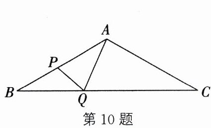 10. 如图,在△ABC 中,AB = AC = 4,∠BAC = 120°,P 为 AB 上一动点,Q 为 BC 上一动点,则 AQ + PQ 的最小值为(