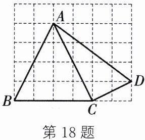 答案:18.(1)根据题意,得$AC = \sqrt{4^{2}+2^{2}} = 2\sqrt{5}$,$CD = \sqrt{2^{2}+1^{2}}=\sqrt{5}$,$AD = \sqrt{3^{2}+4^{2}} = 5$.