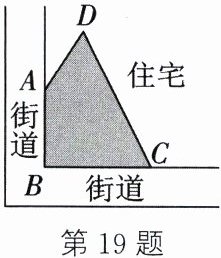 19. (8 分)某小区在社区管理人员及社区居民的共同努力之下,在街道的拐角处建造了一块绿化地(涂色部分). 如图,AB = 9 m,BC = 12 m,CD = 17 m,AD = 8 m,技术人员通过测量确定了∠ABC = 90°.