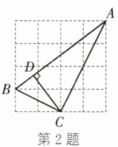 2. 如图,在每个小正方形的边长为$1$的网格中,点$A$,$B$,$C$均在网格的格点上,$CD⊥ AB$于点$D$,则$CD$的长为(