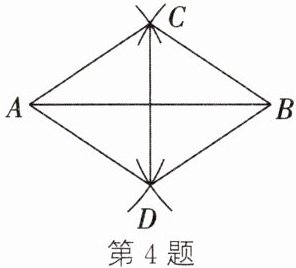 4. 如图,线段 $AB = 10$,分别以 $A$,$B$ 两点为圆心,6 为半径画弧,两弧交于点 $C$,$D$,连接 $CD$,则 $CD=$