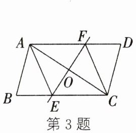 3. 如图,在$□ ABCD$中,过 $AC$ 的中点 $O$ 的直线分别交边 $BC$,$AD$ 于点 $E$,$F$,连接 $AE$,$CF$. 只需添加一个条件即可判定四边形 $AECF$ 是菱形,这个条件可以是