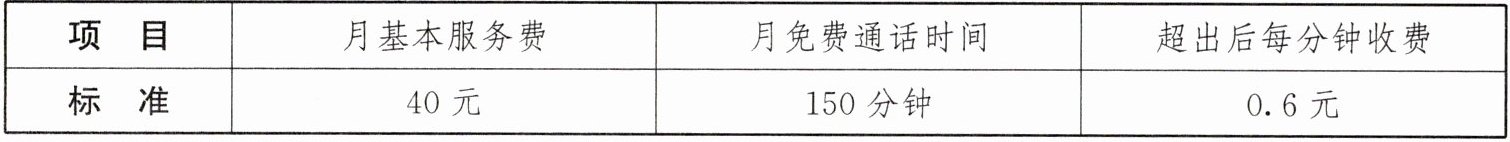 5. 某电信公司提供了一种移动通信服务,收费标准如下表:
