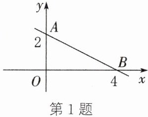 1. 如图,一次函数 $ y = kx + b $ 的图象与坐标轴分别交于点 $ A ( 0, 2 ) $,$ B ( 4, 0 ) $,则关于 $ x $ 的不等式 $ kx + b \geqslant 2 $ 的解集为 (