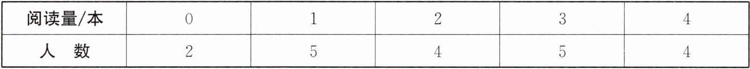 2. 小明为了解本班同学一周课外书的阅读量,随机抽取班上$20$名同学进行调查,调查结果如下表: