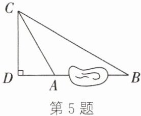 5. 如图,在一次课外活动中,同学们要测量某公园人工湖两侧A,B两个凉亭之间的距离.已知$CD⊥ BA$,现测得$AC=20\sqrt{3}\ \mathrm{m}$,$BC=60\ \mathrm{m}$,$CD=30\ \mathrm{m}$,请计算A,B两个凉亭之间的距离.