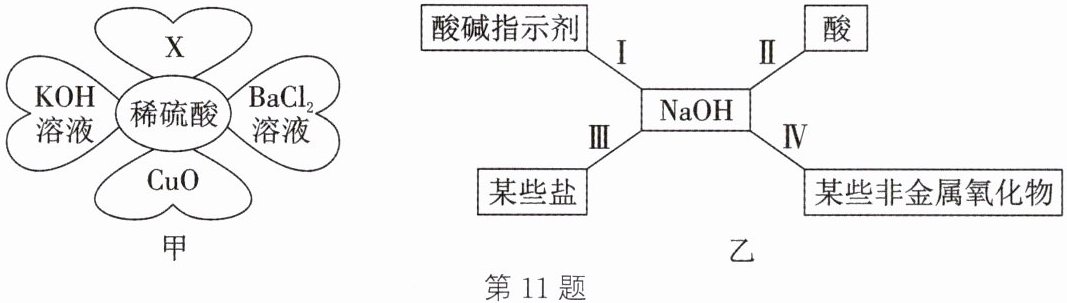 11. 归纳是学习的重要方法,小红在复习酸和碱的性质时,归纳出下列酸和碱的性质。