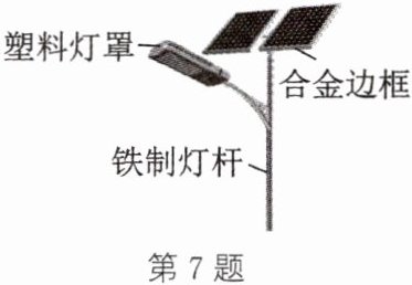 7. 太阳能属于新能源,光伏发电的关键元件是太阳能电池(主要材料为晶体硅)和铅酸蓄电池。如图是太阳能电池路灯。