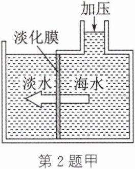 (1) 采用如图甲所示的膜分离法淡化海水,水分子可以通过淡化膜进入左侧的淡水池,从而得到淡水。下列说法中,不合理的是
