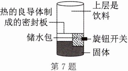 7. (2024·宿迁模拟)如图是某品牌功能饮料罐的内部结构简图,该饮料罐在夏天能制冷,罐底的固体是 (