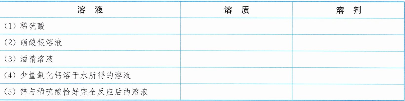 8. 写出下列溶液中溶质和溶剂的化学式。