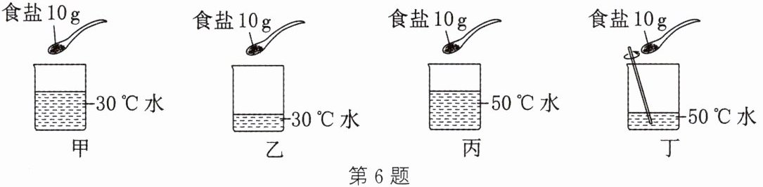 6. (2024·张家口张北段考)若要研究温度对食盐溶解快慢的影响,如图所示的对照实验中,应选用的两个实验是 (
