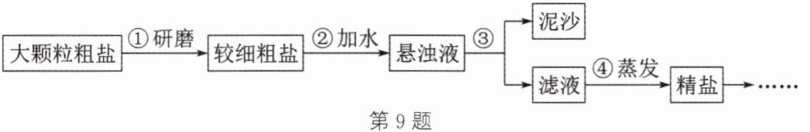 9. 实验室提纯含少量泥沙的粗盐,一般操作流程如图。下列说法正确的是 (