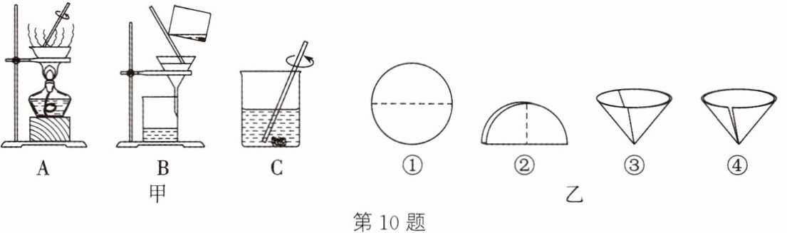 10. 海水晒盐得到的粗盐中往往含有少量泥沙,为了除去泥沙等不溶物,某小组同学设计了如图甲所示的实验。