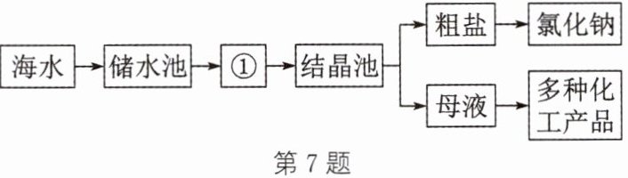 7. (教材 P44 练习与应用 T7 变式)如图是利用海水提取粗盐的过程,下列分析正确的是 (
