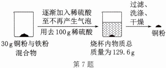 7. 某学习小组的同学利用如图实验,回收实验室废弃的铜粉与铁粉混合物中的铜粉。
