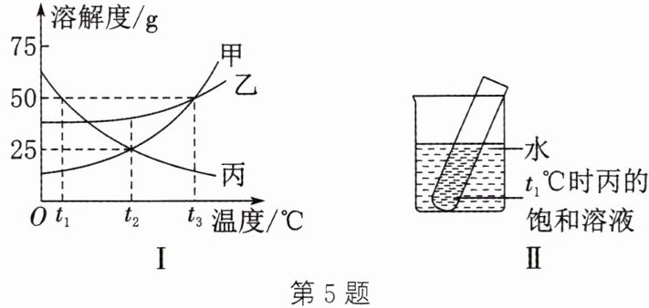 5. (2025·西安模拟)甲、乙、丙三种固体物质的溶解度曲线如图Ⅰ所示,请回答下列问题。