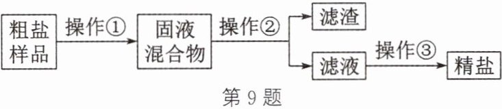 9. 某中学化学兴趣小组的同学对海水“晒盐”得到的粗盐进行提纯,流程如图所示,下列有关说法正确的是 (