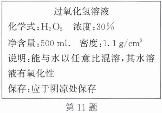 11. (2025·南通质检)实验室有一瓶过氧化氢溶液,标签如图所示。回答下列问题。